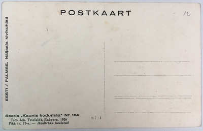 Fotopostkaart sarjast "Kaunis kodumaa" Nr. 048 (tagakülg) - Foto: Carl Sarap (1893-1942)