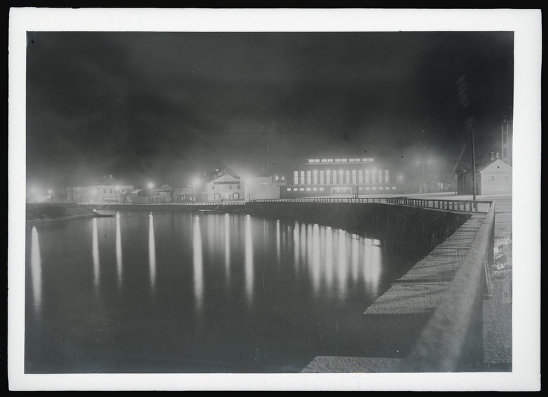 Klaasnegatiiv. Emajõe paremkallas, taga tuledes turuhoone. Tartu, 1938.