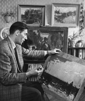 Painting artist, book illustrator, graphics Alo Hoidre (1916-1993) in his ateljee