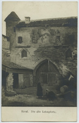 C.Nieländer'i maal, Vana Viru värav, esiplaanil kaks naisfiguuri.
