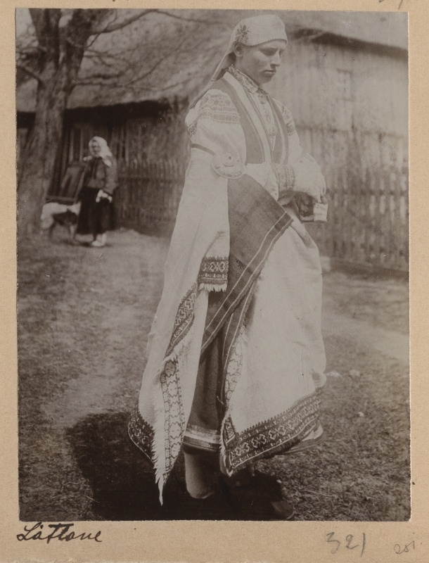 Pruudirõivastes naine Lääne-Kuramaalt, Rutzawast.