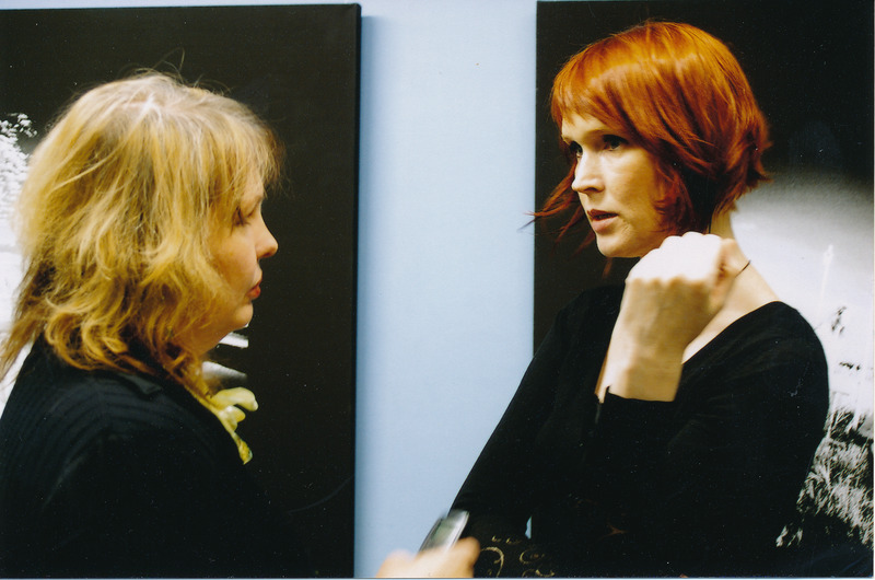 Photo exhibition "Aurora" 13.01.2009. The artist gives interviews to the journalist of Virumaa Journal