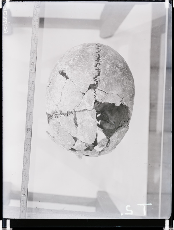 Arheoloogilised kaevamised. Loomõisa kivikirstkalmete leiukoht (Toomani talu). Kivikirstkalmest leitud kolju