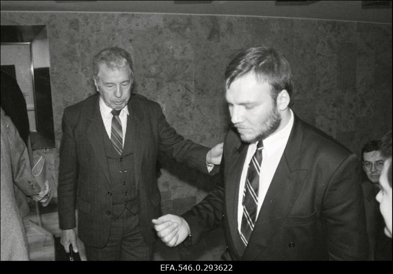 Eesti Vene piiriläbirääkimised. Vene delegatsiooni juht Vassili Svirin (vasakul) ja Eesti delegatsiooni juht Väino Reinart.
