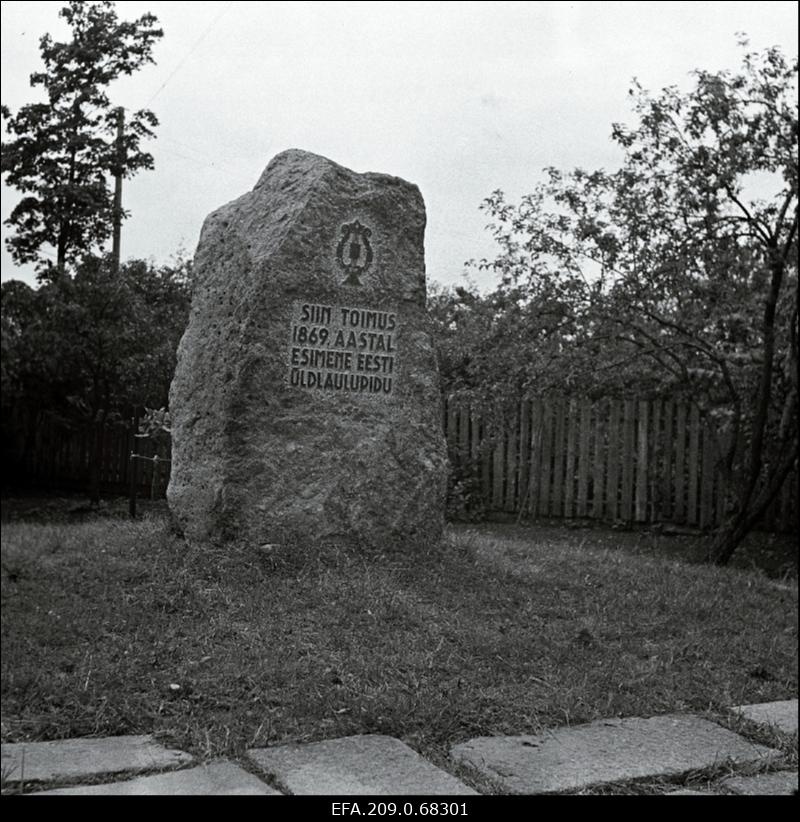 1869. aastal toimunud esimese Eesti üldlaulupeo kohta tähitav mälestuskivi Tartus.