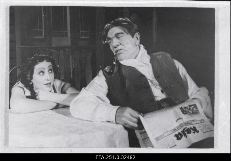 Stseen H. Raudsepa näidendist Mikumärdi Vanemuise teatris. Näitleja H. Viisimaa - Silvia, A. Lauter - Jooram.