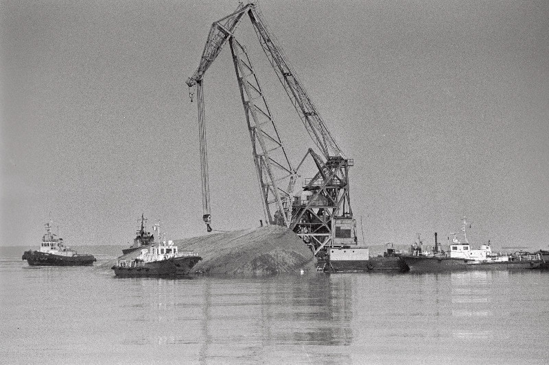 Vene pargase ülestõstmise katsed Tallinna Sadamas.